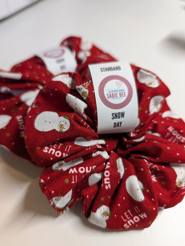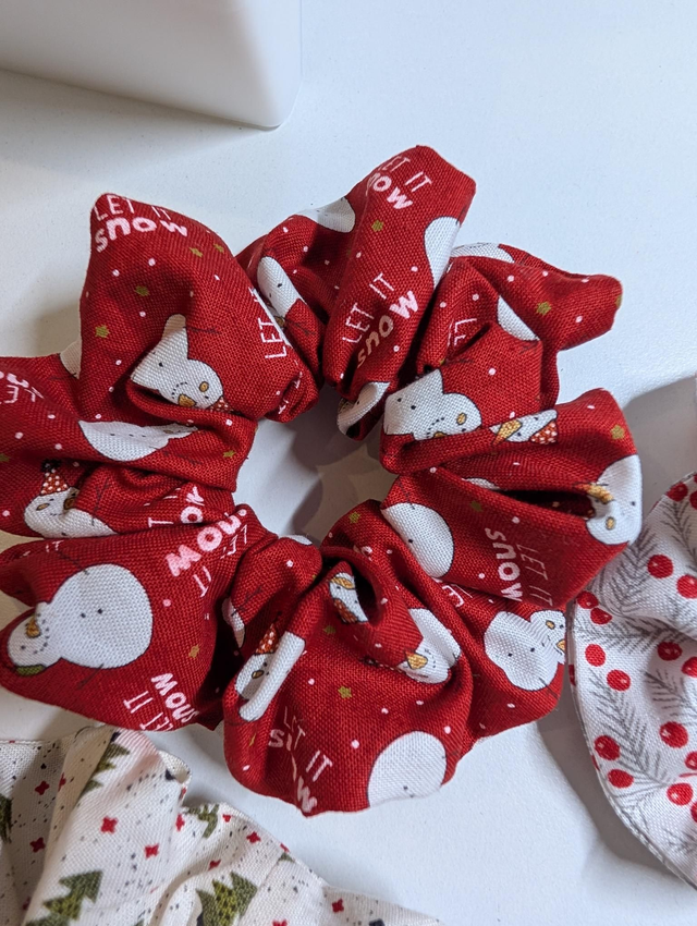 Cute snowman design scrunchie, handmade with 100% cotton.